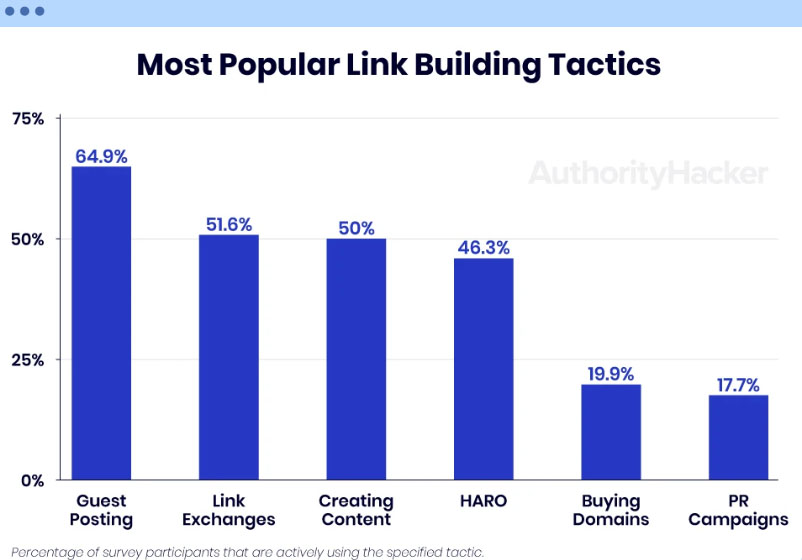 According to Authorityhacker, guest posting is the most common link-building technique used by link builders.